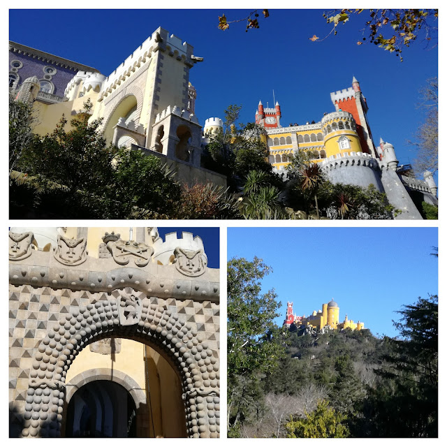 2) Pałac Pena (Palacio Nacional da Pena). Jedziemy pod bramę, wchodzimy na teren parku, zgodnie z sugestią Manuela, jak będziemy chcieli zwiedzić pałac to kupimy bilet w pałacu. Za nim zbudowano tu pałac była kaplica poświęcona Matce Boskiej, później wprowadzono tu mnichów aż w końcu Ferdynand II, postanowił tu wybudować pałac, Budowę ukończono w 1847. Ferdynand II po śmierci małżonki królowej Portugalii Marii II, ożenił się ponownie z kobietą niższego stanu, ze śpiewaczka operową Elizą Hensler, którą mocno pokochał i to jej po swojej śmierci zapisał w testamencie Pałac Pena i zamek Maurów. Rodzina królewska chcąc odzyskać budynki musiała je odkupić od Elizy.